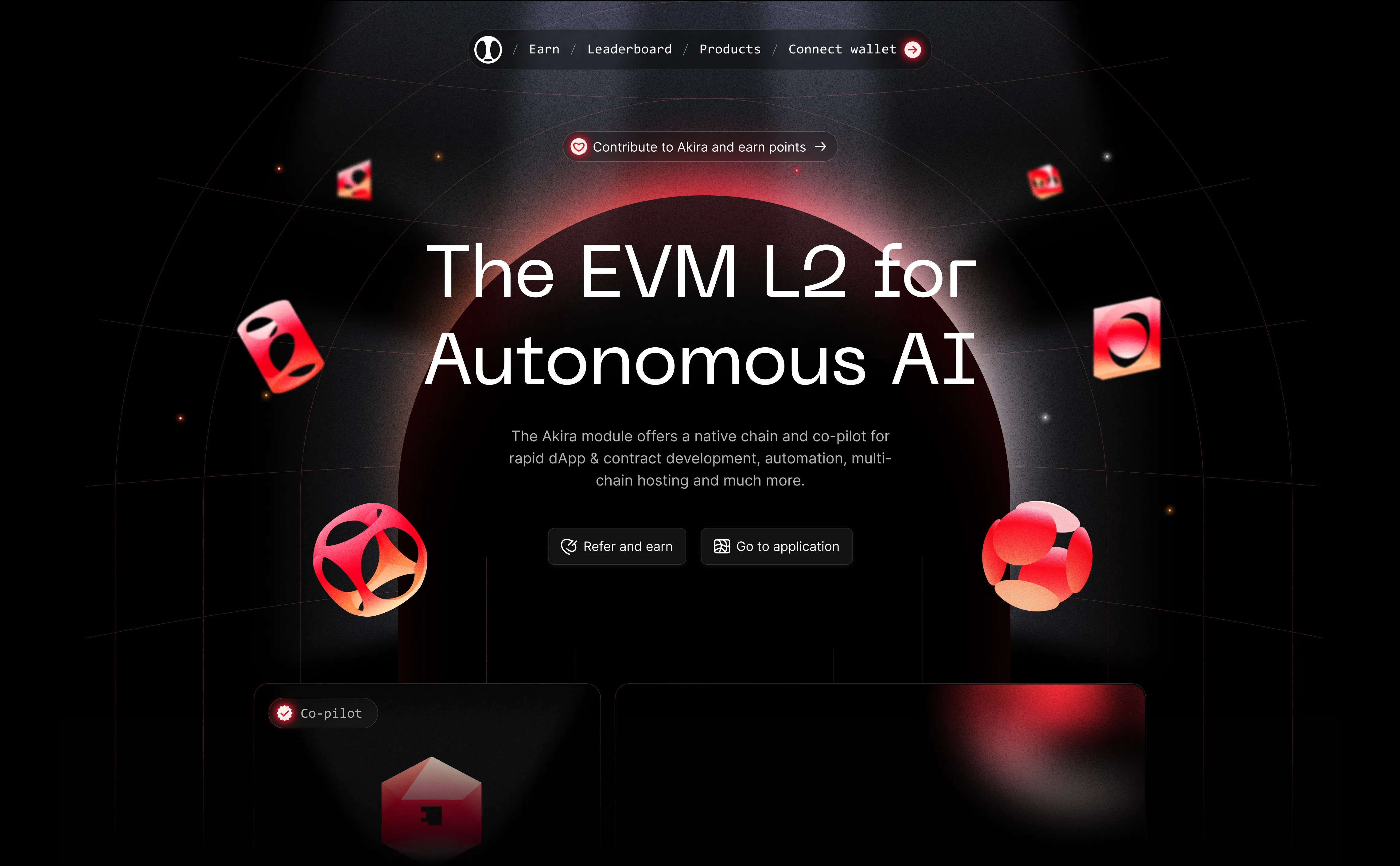 The Akira module offers a native chain and co-pilot for rapid dApp & contract development, automation, multi-chain hosting.